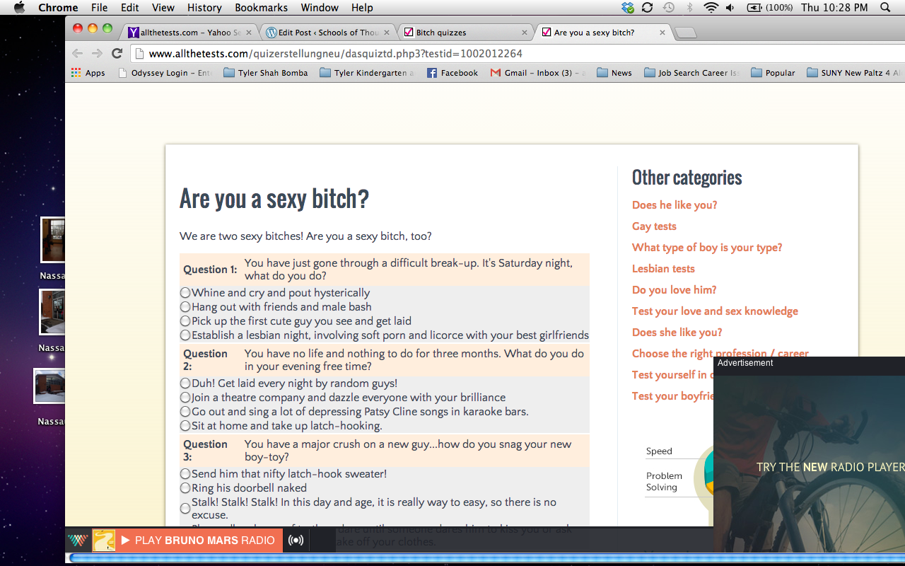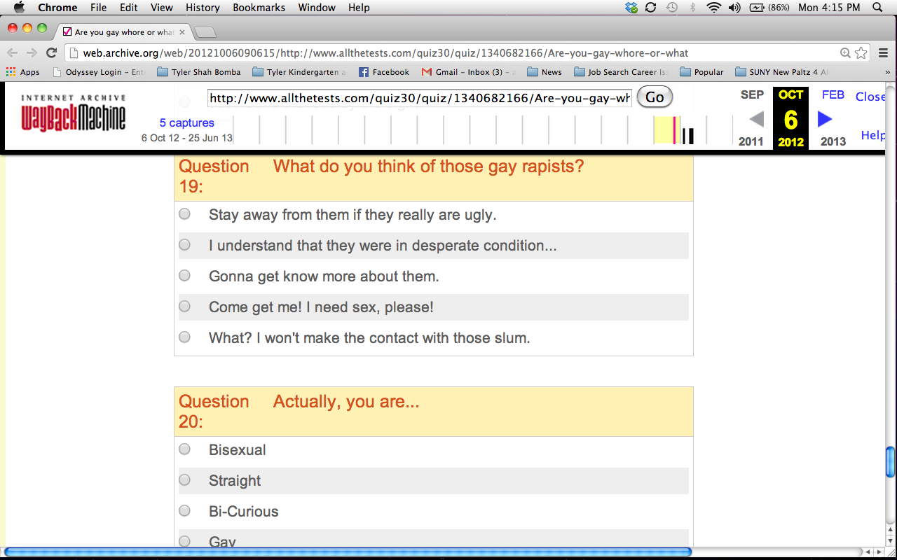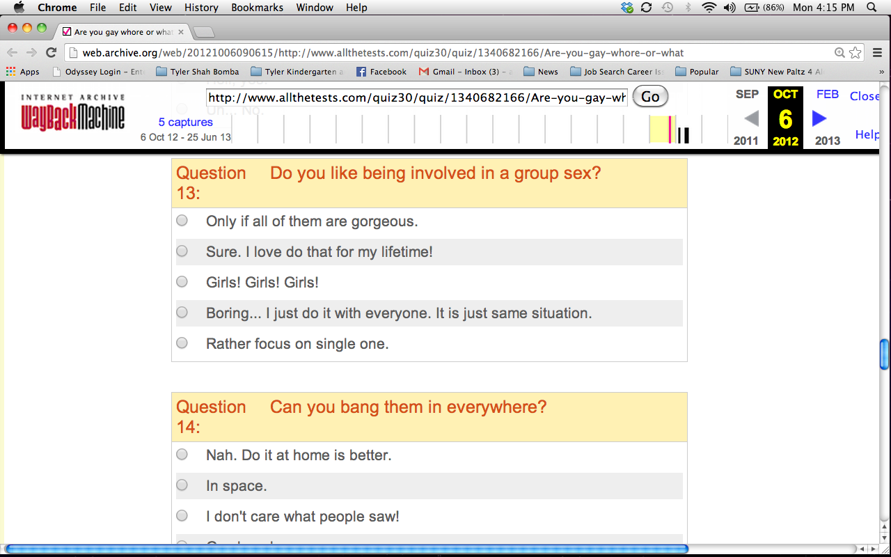 This “are you a man whore?”, quiz was created and available to students on the site since July 2012. NYSED claims they linked to the site October 2012.