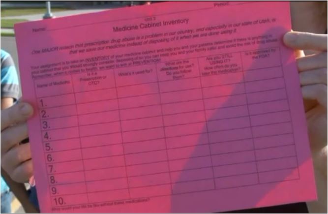 One mother sounded the alarm when she discovered a health class assignment at Mapleton Junior High School was to catalog the contents of their parents’ medicine cabinet on a form titled “Medicine Cabinet Inventory” and turn it into the teacher, reports Fox 13.