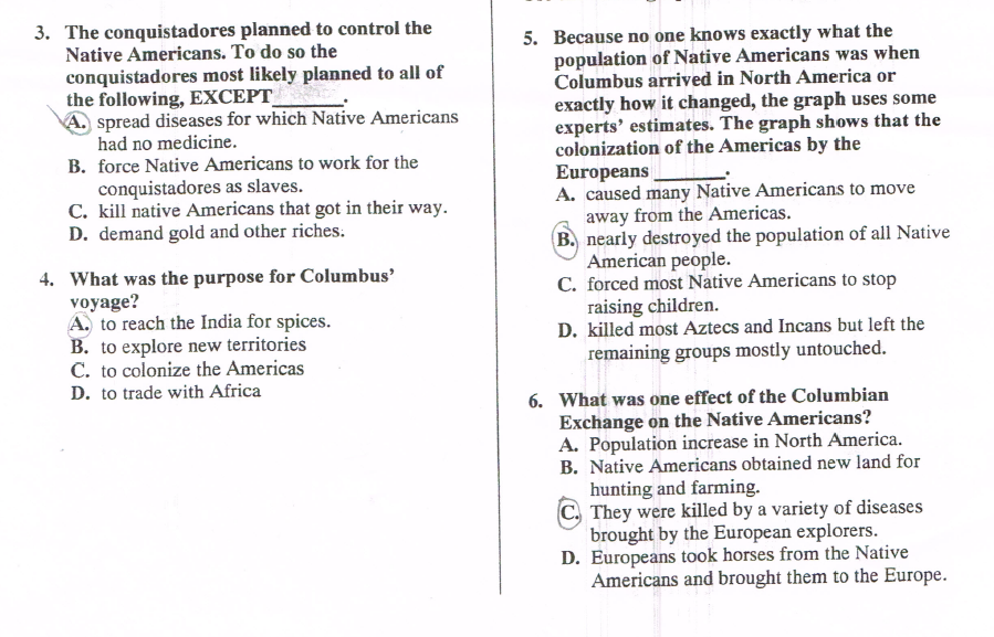 As also shown, question number 3 first presumptuously states as fact that “the conquistadors planned to control the Native Americans”; then asks the following: