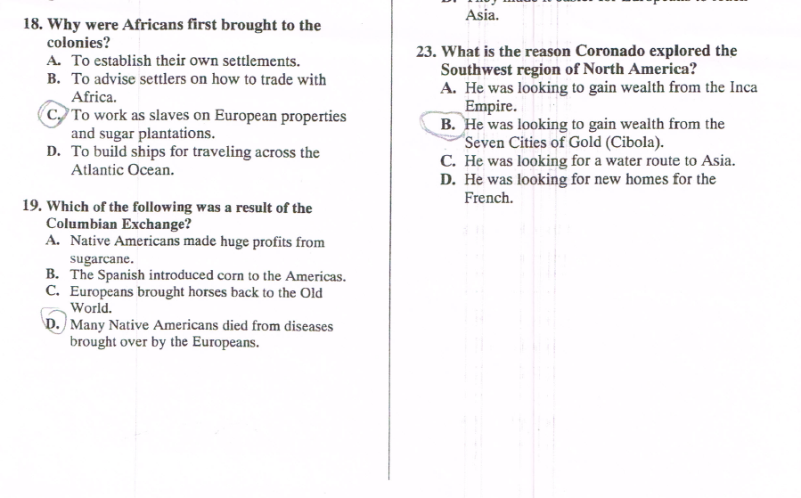 A question about African American slaves working on European properties and sugar plantations is also included in this quiz on early American explorers, which the father says appears to be “an attempt to blame the enslavement of African Americans on Columbus and other European explorers, despite the fact that African enslavement in the U.S. did not begin to occur until at least 100 years later.”