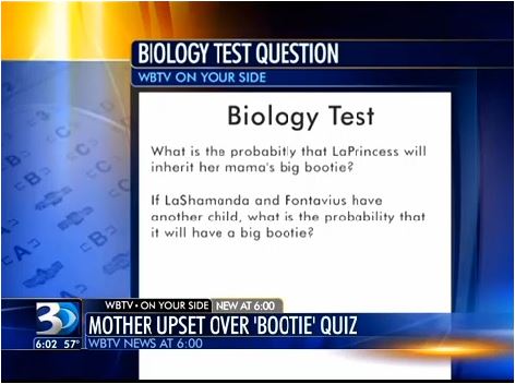 CHARLOTTE, N.C. – A teacher is apologizing “if” she offended anyone with a quiz question about “big booties” on a high school biology test.