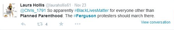 Out of curiosity, I looked up some tweets tonight to see if anyone else was wondering why the outraged Black community is not equally as upset over what Planned Parenthood is doing each day to Black babies. The abortion giant has killed more Blacks through abortion than many other causes of death combined.