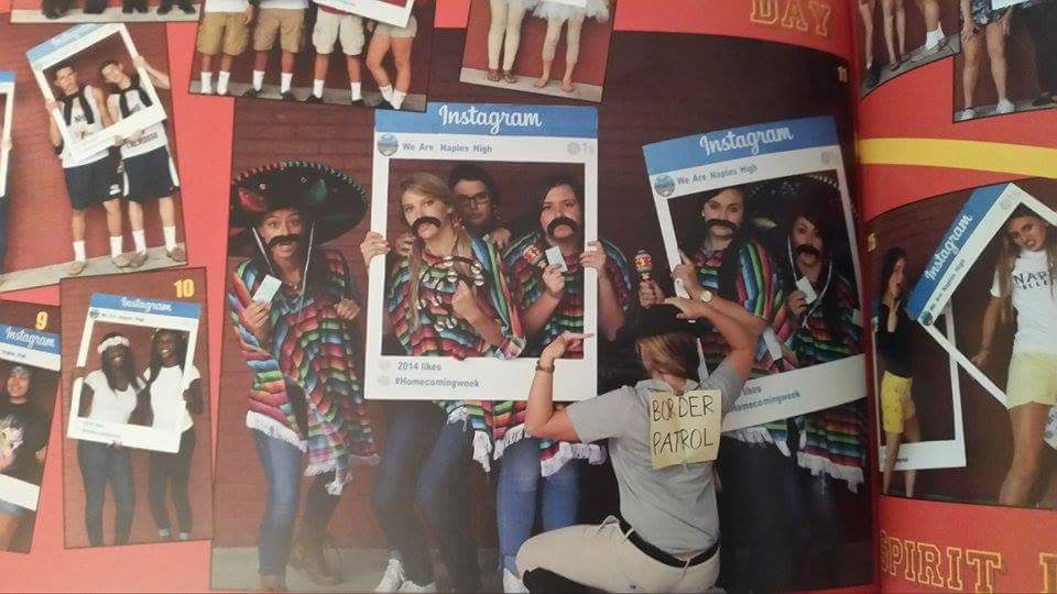 The picture in question is from Naples High School’s Spirit week. The Naples High yearbook staff has a vetting process for which all content is reviewed. If anyone on the yearbook team finds a picture questionable, the yearbook sponsor brings it forward to Principal Saba. That regrettably did not happen in this case. Mr. Saba stated, “We regret if any Golden Eagle student, parent, or community member found it offensive. It was not our intent.