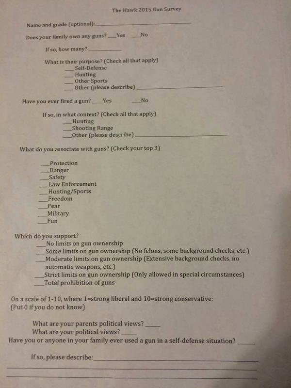 [The Second Amendment] is a great conversation for kids to have in the classroom and definitely for journalism because it applies directly to our Constitution… but the questions that concern me are the ones that ask ‘how many firearms does your parents have at home?’ and ‘what political affiliations do your parents have?’ That’s private.