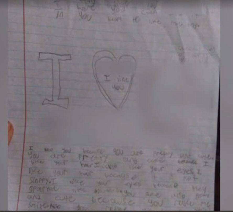 The boy, who also was not identified, penned the note and others recently to a young girl in his Hillsborough school. He wrote about how he liked her neatly kept hair, how her eyes “sparkled” like diamonds, and why he finds her so “funny and cute,” according to the note published by the news site.