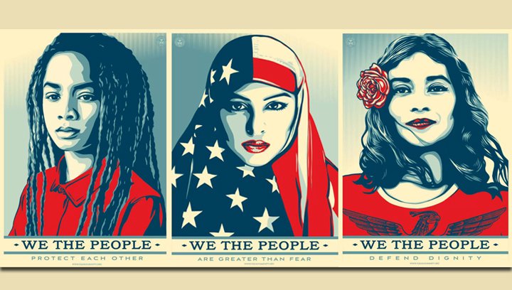 The poster’s designer, Shepard Fairey, told the Los Angeles Times they’re “a pointed reference to people who have felt attacked by President-elect Donald Trump.”