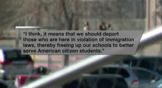 “I think, it means that we should deport those who are here in violation of immigration laws, thereby freeing up our schools to better serve American citizen students,” she wrote in the Feb. 16 post.