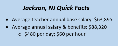 Let’s compare that assessment to actual teacher compensation in the Jackson Township, New Jersey school district, with base salary and major benefits added in.