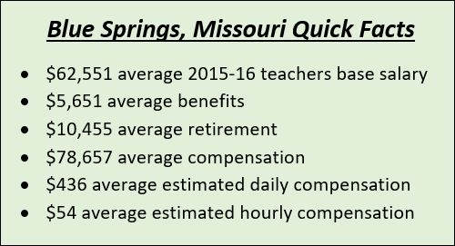 In 2015-16, the 961 Blue Springs teachers were paid a collective $62,994,981 in base salary, for an average of $62,551.