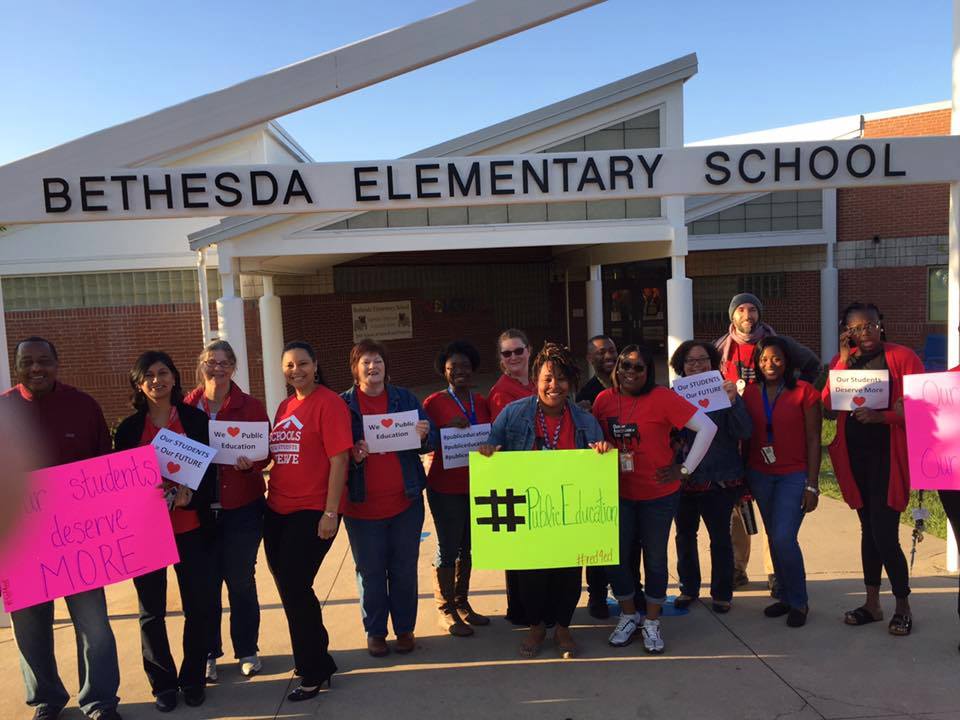 “These budget cuts hurt our children,” Holly Grove PTA president Crystal Rogers said. “As a parent, I want my child to have all the energy and all of the knowledge that her teacher has to offer her without having to strain against budget cuts and not having the resources needed.”