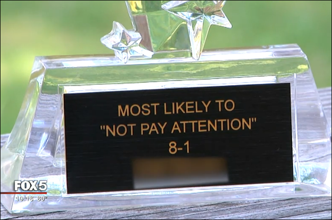 CONYERS, Ga. – Two teachers are out of a job after they presented a special needs student with an award for “Most Likely to Not Pay Attention” at a recent school assembly.
