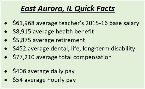 East Aurora teachers worked 190 days that year, for 7 ½ hour days. Using that schedule, the average total compensation breaks down to about $406 per day and about $54 per hour.