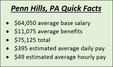 Penn Hills teachers work 190 days per year, so the average compensation breaks down to about $395 per day. Assuming the teachers work eight hours a day, that breaks down to about $49 per hour.