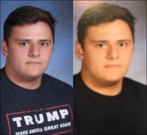 Berardo went to the media last week after he realized his photo for the school yearbook was Photoshopped to remove the “TRUMP Make America Great Again” logo from his shirt. Other students complained that their references to the president were scrubbed, as well, including a quote from the freshman class president and a Trump sweatshirt worn by her brother on picture day.